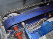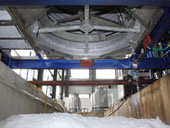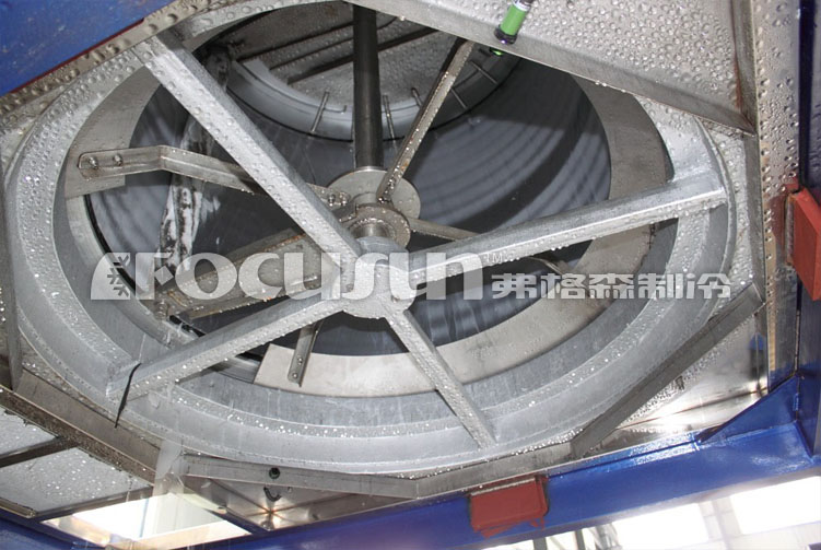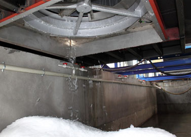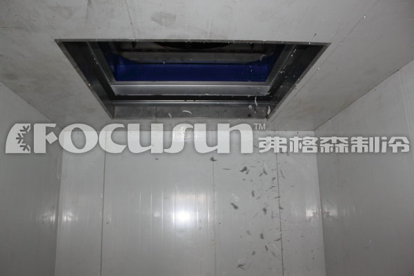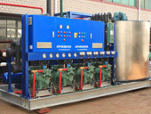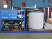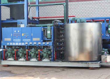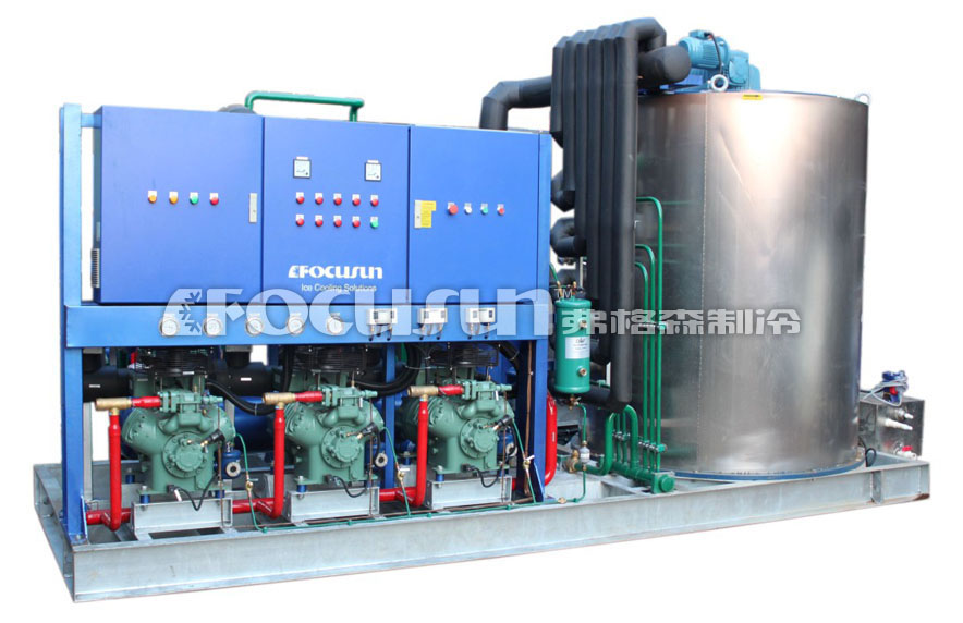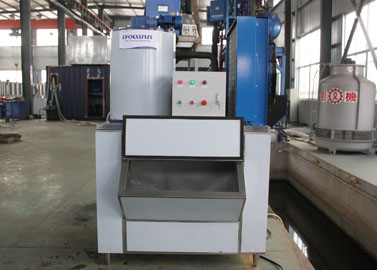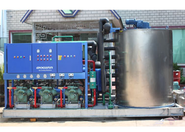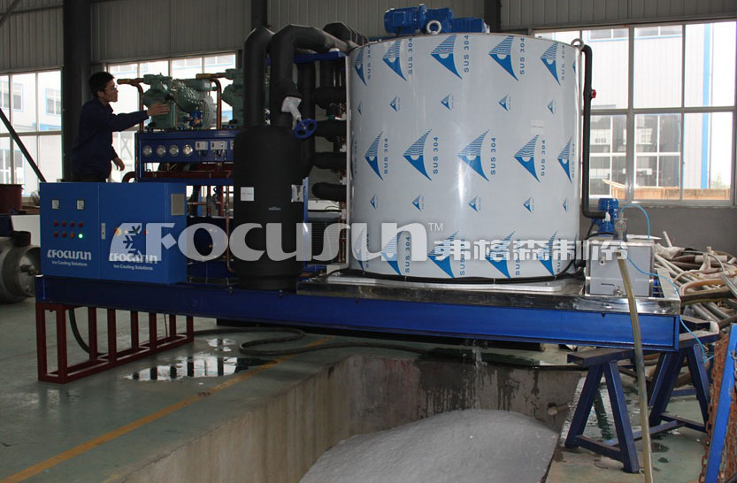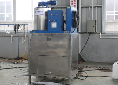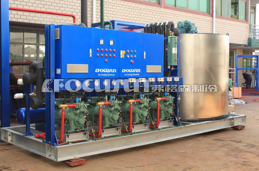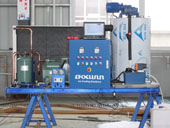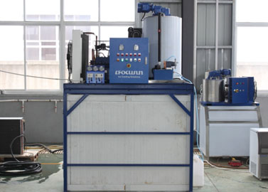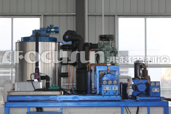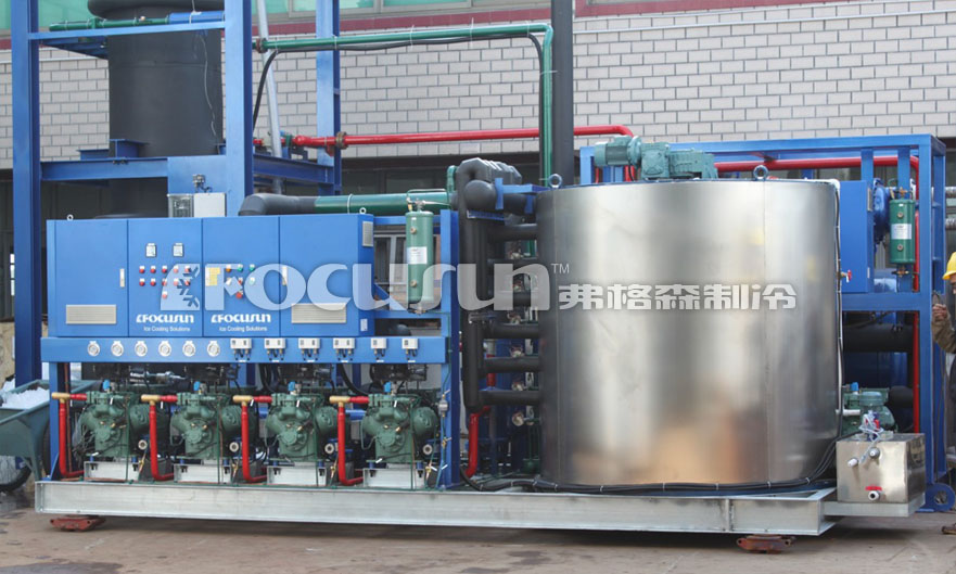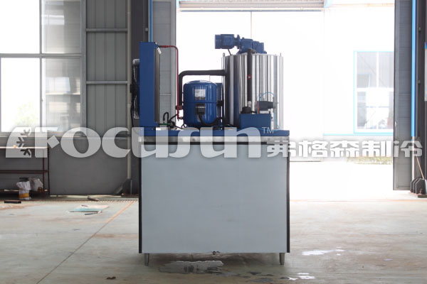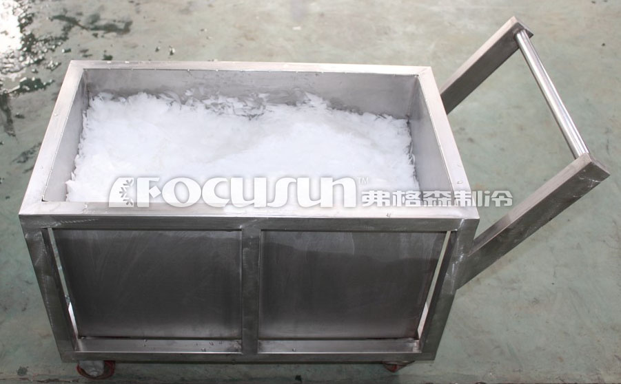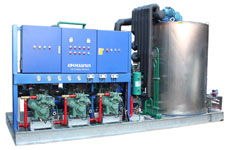 عملية صنع الجليد: .. يرش الماء على سطح تجميد بالتساوي من خلال رش المياه ويشكل الفيلم المياه نظرا لتبادل الحرارة مع المبردات، ودرجة الحرارة تنخفض بسرعة حتى يتم تشكيل طبقة رقيقة من الجليد تحت قذف الجليد تزلج، وطبقة الجليد الرقيقة يتحول إلى رقائق الثلج ثم يقع في الجليد بن التخزين من مأخذ الجليد، والثلج فليك التدابير حوالي 40 × 40مم وسمك حوالي 1.5-2.5مم.
