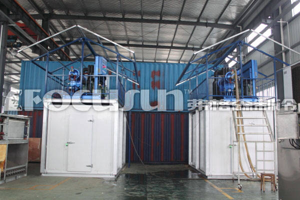 فوكوسون قدرة النباتات الصغيرة فليك الثلج لديها تصميم وحدات ومتكامل الذي يسمح شحنة السهل، والانتقال والتثبيت على الفور. مجهزة الجليد بن صغير تحت آلة، تقشر الجليد صانع يستطيع المحافظة على إنتاج فليك الثلج لمدة تصل إلى 3 أيام.